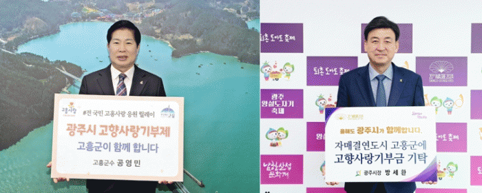 공영민 고흥군수는 “올해도 광주시와 함께 고향사랑기부제를 응원할 수 있어 기쁘다”며 “앞으로도 상생 발전할 수 있는 방안을 적극적으로 모색해 양 도시 간의 교류가 더욱 활성화될 수 있도록 노력하겠다”고 말했다.