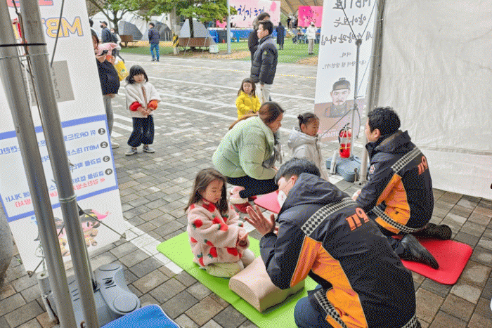 119안전체험 한마당 운영 내용으로는 ▲연기소화기를 이용한 소화기 사용법 교육·홍보 ▲심폐소생술 및 자동심장충격기(AED) 사용법 교육 ▲기도폐쇄 응급처치 교육 ▲ 주택용 소방시설 의무설치 전단지 홍보 등으로 진행됐다.