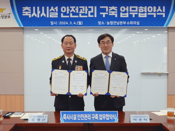 이번 협약으로 화재안전컨설팅(안전교육 및 소방시설 작동 점검지도), 축사 개선사업, 신축(허가) 시 시설물 원스톱 안전지도 지원, 축사 전기안전점검 및 시설현장 정보공유, 농협사료 운송자 화재안전교육 등을 위해 적극 협력한다.