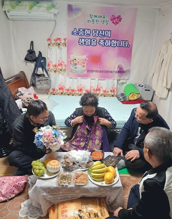 강진읍지사협 위원과 읍사무소 직원들이 손수 준비한 음식과 함께 생일 축하의 노래로 시작된 파티는 따뜻한 대화와 웃음 속에서 이어졌다.