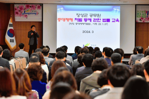 김한종 장성군수는 “교육을 통해 ‘중대재해처벌법’에 대한 이해도를 높이고, 군 실정에 맞는 안전,보건체계 구축의 토대를 마련하겠다”면서 “모든 군민이 안전하고 행복한 장성을 만들기 위해 900여 공직자와 최선을 다할 방침”이라고 밝혔다.