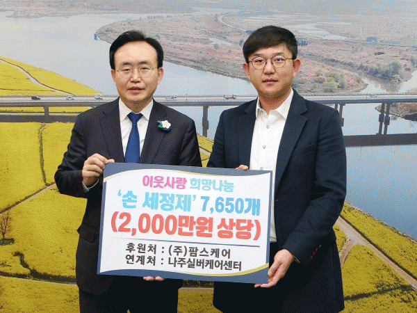 손 세정제 기탁은 평소 나눔 활동을 지속해온 ㈜팜스케어와 인연이 있는 나주실버케어센터 한윤식 센터장 주선을 통해 이뤄졌다.