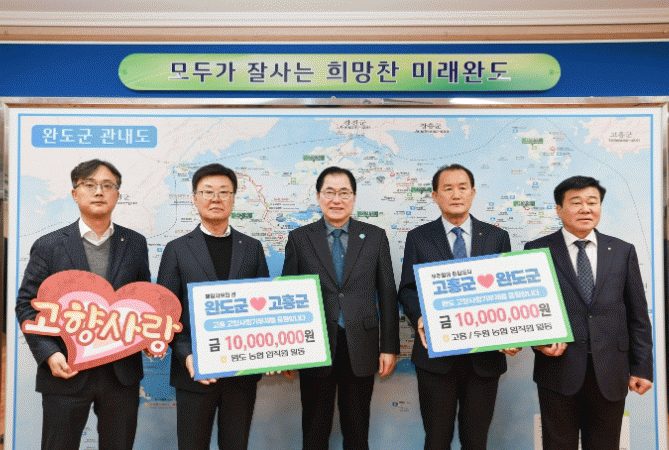 지난 2월 23일에는 완도농협과 고흥농협, 두원농협 임직원이 상호 기부에 동참하여 1천만 원을 군에 기탁했다.