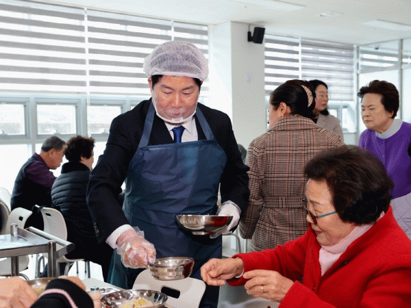 도양노인건강복지타운 노인복지관 경로식당 운영 첫날에는 공영민 군수가 어르신 100여 명을 대상으로 직접 배식 봉사를 하면서 어르신들과 따뜻한 온기를 나눴다.