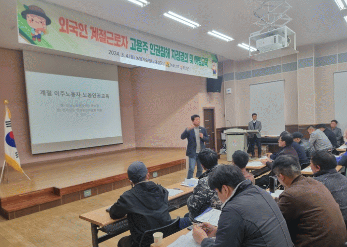 군은 지난 4일 외국인 계절근로자 고용주 150여명을 대상으로 자정 결의대회 및 인권침해 예방교육을 실시했다.