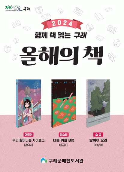 ‘함께 책 읽는 구례, 2024 올해의 책’은 군민의 독서 생활화를 도모하고 도서관 이용을 독려하기 위해 2022년부터 추진된 독서 운동이다.
