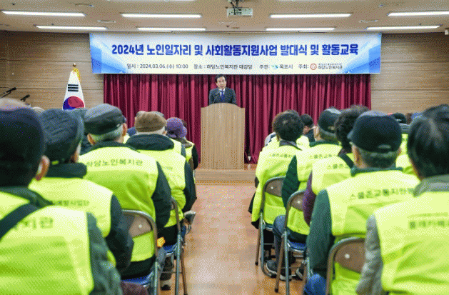 시는 지난 6일 하당노인복지관 및 목포이랜드노인복지관에서 노인일자리발대식을 시작하고 노인일자리 및 사회활동지원사업의 본격적인 운영에 들어갔다.