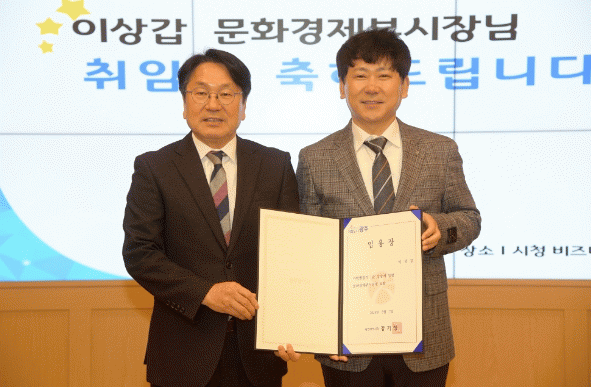 다방면에 네트워크가 풍부한 가장 적합한 분을 신임 문화경제부시장으로 모신 만큼 새로운 변화의 바람이 돼달라”고 당부했다.