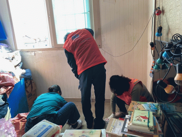 모란로타리클럽, ‘정리테라피’ 전문업체는 청소와 폐기물 처리를 도왔다. 정리수납법 교육도 제공했다.