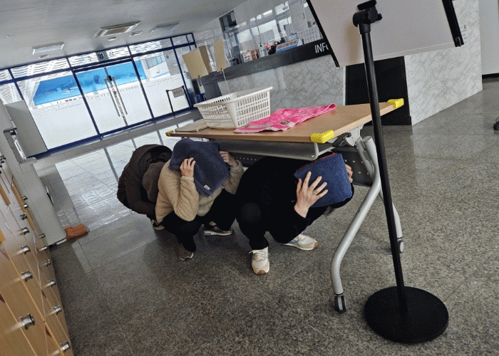 문화센터 안전 관리 요원의 안내에 따라 이용객과 직원들은 몸을 최대한 낮추고, 가방이나 방석 등으로 머리를 보호하면서 계단을 통해 주차장으로 신속하게 대피해 안전을 확보했다.