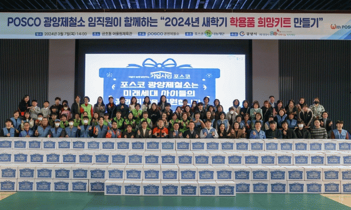 한편, 광양제철소가 2017년부터 시작한 '학용품 희망키트' 지원사업은 올해 8회째로 지금까지 6천8백 박스, 6억4천만 원 상당의 학용품을 구입해 광양시와 일상이 되고 함께하는 시민 기업의 경영이념을 실천해오고 있다.