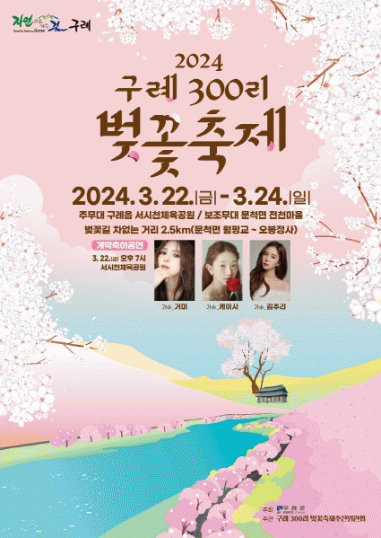 김순호 군수는 “흩날리는 꽃잎만큼 풍성한 300리 벚꽃축제에서 소중한 사람들과 잊지 못할 추억 쌓고 가시기를 바란다”고 말했다.