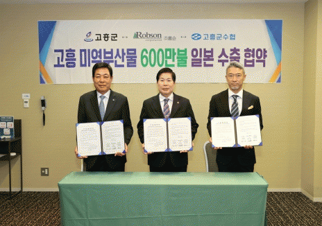 이번 수출협약은 향후 3년간 600만 불의 미역부산물을 일본에 수출하는 것으로, 고흥군-고흥군수협-일본 ㈜롭슨 3자 간 지속적인 교류 및 협력체계를 구축해 협약이 이뤄졌다.