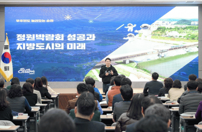 입숙식에서 노관규 순천시장은 ‘우주인도 놀러 오는 순천, 정원박람회 성공과 지방도시의 미래’라는 주제로 입숙 특강을 진행했다.