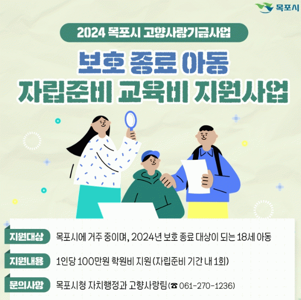 지난해 고향사랑기부제를 통해 목포에 응원을 보내주신 기부자분들의 따뜻한 마음이 기금사업을 통해 보호종료아동에게 잘 전달될 수 있도록 차질없이 진행하겠다”고 밝혔다.