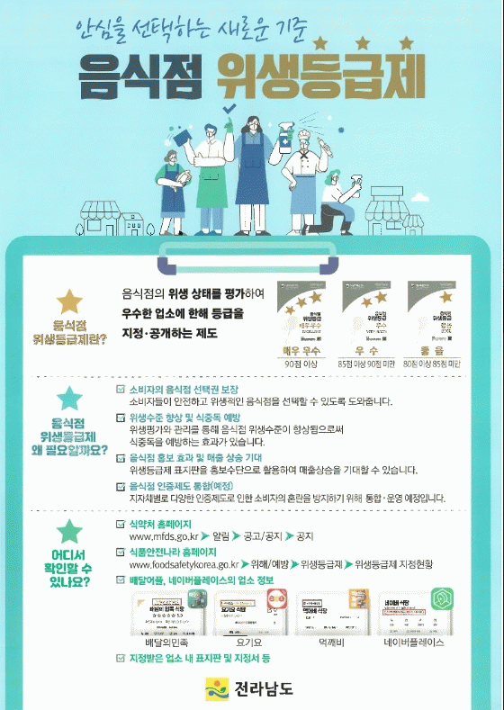 지난해 맞춤형 컨설팅 지원사업에 참여한 음식점 100%가 위생등급 지정을 받았으며, 앞으로 더 많은 영업자가 음식점 위생등급제에 참여할 수 있도록 교육·홍보 등 지속 추진할 계획이다.