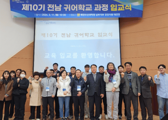 제10기 귀어학교 과정은 5월 3일까지 8주간 운영된다. 입교생 16명은 서울·경기·인천 7명(44%), 전남 7명(44%), 광주 2명(12%)이며, 어선어업(9명)과 양식업(7명)을 희망하는 예비 귀어인으로 구성됐다.