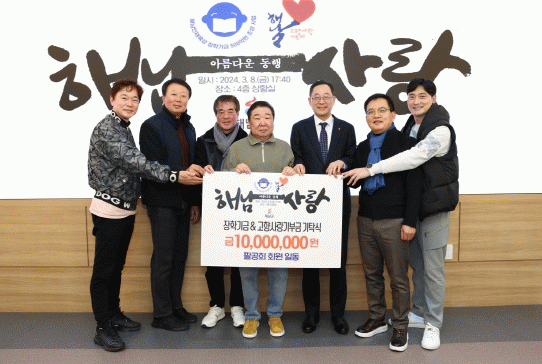 김장호 회장을 대표로 고향사랑기부제와 장학사업기금을 각 500만원씩, 총 1,000만원을 기탁한 참석자들은 “아름다운 자연환경을 배경으로 운동을 즐기기 위해 방문했는데, 이번에 해남군에서 고향사랑기부제 확산과 장학사업기금 500억원 조성이라는 뜻깊은 프로젝트가 진행 중임을 알게 되어 기부를 마음먹게 됐다”며 “이번 기부금이 해남군에서 수학 중인 아이들이 여러 분야의 인재로 자라는 데에 쓰이기를 바란다.”는 소감을 전했다.