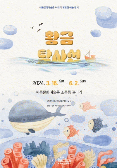 또한 소동동에서 어린이 체험형 예술전시 ‘황금 탐사선’이 열린다. 미래세대를 대상으로 동화적 요소를 가미한 이번 전시는 전시장 전체를 푸른 빛으로 구성해, 굽이굽이 돌길 따라 바닷속을 거니는 듯한 공간을 연출한다. 대중 접근성이 강화된 전시를 통해 미래세대에 문화와 어우러지는 교육적 가치를 부여하고자 한다.