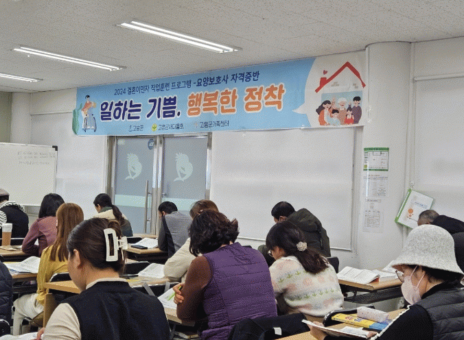 올해는 결혼이민자의 수요조사를 통해 가장 많이 선택한 요양보호사 자격증 취득반을 처음으로 개설했다. 오는 6월 말까지 70회기, 240시간을 운영할 계획이다.