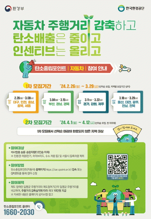 시 관계자는“자동차 이용 보다 대.자.보(대중교통.자전거.보행) 실천을 통해 온실가스와 미세먼지를 줄이고 최대 10만원의 인센티브도 받을 수 있는 탄소중립포인트(자동차)에 시민 여러분의 많은 관심과 참여를 바란다”고 말했다.