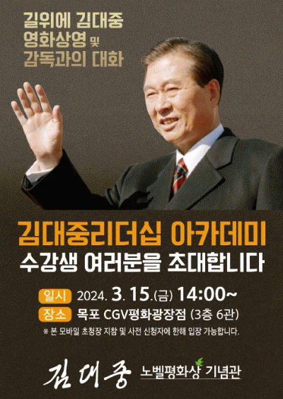 김두복 관장은 “이번 김대중리더십아카데미를 통해 김대중이라는 역사적 인물이 어떻게 우리에게 희망과 동력이 됐는지 시민들이 깊이 느낄 수 있었으면 한다”고 밝혔다.