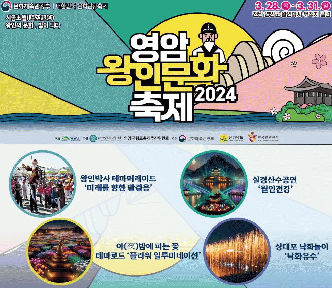 영암의 100리 벚꽃길과 왕인박사유적지, 상대포, 구림마을 등 다양한 장소를 배경으로, 왕인박사의 업적을 현대의 관점으로 재해석해 문화·예술·전시·교육 프로그램으로 신선한 경험을 제공할 채비를 마쳤다.