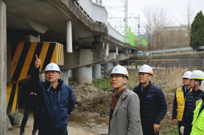 이날 점검에는 조익문 공사 사장과 구조물 특급기술자인 박진금 송원대 교수, 각 기술부서가 합동으로 용산차량기지 교량 표면 관리 실태, 담장 축대 침하 상태, 건축물 균열 및 침하 여부, 연약지반 상태 등을 점검하며 안전 관리 상황을 점검했다.