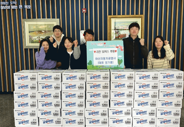 한편, 아산자동차공업사는 2020년, 2021년에 라면 100박스 후원 및 2022년에는 밑반찬 50개, 2023년 라면 100박스를 후원하는 등 지역사회에 꾸준한 나눔 실천을 이어가고 있다.