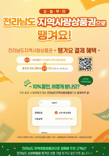 소비자는 매월 11일과 22일 ‘땡데이’로 파격적 할인이벤트를 누릴 수 있다. 첫 주문과 재 주문 시 최대 1만 원의 쿠폰이 지원되며, 오는 21일부터 전남도 지역사랑상품권 결제가 연동됨에 따라 특별한 이벤트도 진행될 예정이다. 21일부터 4월 14일까지 지역사랑상품권으로 결제 시 소비자는 최대 5천 원의 할인쿠폰을 무제한 제공받을 수 있다. 이외에도 12월까지 신한은행 땡겨요 적금 가입 시 최대 1만 원의 쿠폰 지급, 6월까지 신한은행 계좌로 결제 시 최대 10%의 땡겨요페이 적립 등 다양한 소비자 프로모션을 진행한다.
