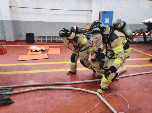 전술훈련 평가는 개인평가로는 로프매듭법, 공기호흡기 장착 및 비상호흡법을 실시한다.