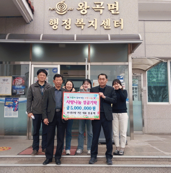 왕곡면 출신 정윤택 대표는 “고향인 왕곡면에 작게나마 도움이 되길 바라는 마음에 나눔을 실천하게 됐다”며 “저소득층을 위한 복지사업에 유용하게 사용되길 바란다”고 말했다.