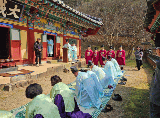 행산는 조희용 전교(곡성향교)와 윤영규 곡성군의회 의장(옥과향교 대행)이 도포와 유건을 차려입고 초헌관으로서 직접 제사를 올리며, 충성, 효도, 예의의 가치와 향교의 깊은 정체성을 되새기는 의미 있는 시간을 가졌다.