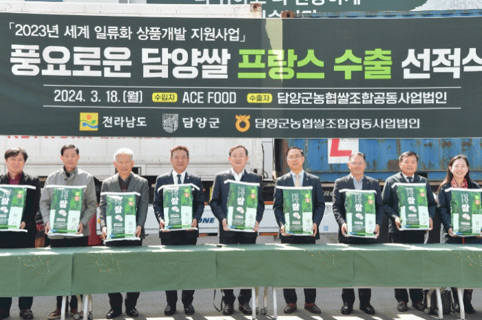 담양군은 ‘담양군농협쌀조합공동사업법인’이 프랑스 현지 아시안 식료품 유통전문업체인 ‘ACE FOOD SAS’와 계약해 수출 전용 브랜드인 풍요로운 담양쌀 12톤을 지난 18일 선적했다고 밝혔다.