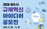 여수 전향윤 기자2026. 02.10[뉴스맘]여수시는 오늘(10일)부터 3월 31일까지 법령이나 조례 등에 과도한 규제로 시민의 일상생활에 불편을 주거나 기업 경영활동에 걸림돌이 되는 불합리한 사항을 발굴·개선하기 위해 “2026년 여수시 규제혁신 아이디어 공모전”을 실시한다. 공모 분야는 ▲시민안전·복지향상 ▲생활불편 ▲취업·일자리 ▲기업활동 ▲신산업 규제 등이며 규제 개선을 위한 제안은 전 국민 누구나 참여할 수 있다. 참여를 희망하는 경우 여수시 누리집 고시공고란에 게시된 제안서를 작성해 방문 또는 우편, 담당자 이메일로 제출하면 된다. 단, 단순 민원이…