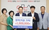[뉴스맘]광주 동구는 최근 지산1동 동백회로부터 인재 육성에 써달라며 장학금 1백만 원을 기탁받았다고 밝혔다. ‘동구에서 백세까지’라는 뜻을 담고 있는 동백회는 윤승오 지산1동 주민자치회장을 비롯해 주민과 관내 동 거주 직원 등으로 구성된 모임으로, 지역사회 발전과 주민 간 소통을 도모하고 있다. 이번 장학금은 회원들이 십시일반 회비를 모아 마련한 것으로, 동구 인재육성장학회에 전달됐다. 장택용 회장은 “작은 정성이지만 우리 지역 학생들의 밝은 미래에 보탬이 되길 바란다”고 말했다. 임택 동구청장은 “지역을 사랑하는 마음…