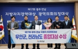 나주 전향윤 기자2025. 11.26[뉴스맘]전남 무안군이 26일 광주광역시 염주체육관 내 올림픽기념국민생활관 1층 세미나실에서 열린 제17회 광주·전남 지방자치경영대상에서 ‘종합대상’을 수상하며 종합행정 분야에서 전방위로 탁월한 성과를 인정받았다. 광남일보가 주최하고 전라남도와 광주광역시가 후원하는 이번 경영대상은 7개 부문에서 각 지자체의 정책성과를 심사해 수상기관을 선정하며, 5개 이상 부문에 출전한 지자체 중 우수 평가를 받은 곳에 종합대상을 수여한다. 무안군은 ▲행정서비스 ▲문화관광 ▲보건복지 ▲경제활성화 및 일자리창출 ▲안전환경 등 5개 분야에서 고…