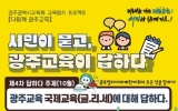 광주 전향윤 기자2025. 10.19[뉴스맘]광주시교육청시민협치진흥원은 오는 29일 오전 10시부터 2시간 동안 본원 소강당에서 시민 소통 행사 ‘시민이 묻고, 광주교육이 답하다’를 운영한다. 이번 행사는 지난 7월 ‘고입·대입 진학’ 주제를 시작으로, 8월 ‘AI 디지털 교육’, 9월 ‘학교폭력 예방 및 학생 마음·사회 정서’ 등 순으로 진행됐으며, 29일에는 올해 마지막으로 ‘국제교육’을 주제로 열린다. 마지막 행사 역시 시민들의 궁금증을 해소하고 공감대를 형성하는데 주력할 예정이다. 시교육청 세계민주시민교육과 장학관, 장학사가 참여해 국제교육 핵심 정책인 …