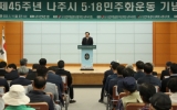 나주 전향윤 기자2025. 05.19[뉴스맘]나주시는 5월 19일 오전 10시, 나주시민회관 2층 강당에서 ‘제45주년 5‧18 민주화운동 기념식’을 개최하고 오월 정신의 역사적 의미를 되새기는 시간을 가졌다. 이날 기념식은 ‘아! 오월, 다시 만난 오월’을 슬로건으로 윤병태 나주시장과 신정훈 국회의원, 이재남 시의장, 김석기 광주지방보훈청장을 비롯해 5‧18 유공자와 유족, 시민 등 200여 명이 참석했다. 행사는 식전 추모공연을 시작으로 국민의례, 기념사, 추념사, ‘임을 위한 행진곡’ 제창, 헌화와 분향순으로 이어졌다. 이날 추모공연은 만월 놀이패 살풀이와 …