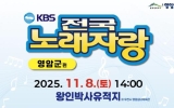 영암 전향윤 기자2025. 10.16[뉴스맘]영암군이 KBS전국노래자랑 예심 참가자를 15~24일 선착순 300명 모집한다. 영암군 주최, KBS 주관으로 11/8일 오후 2시 왕인박사유적지에서 열리는 전국노래자랑에서 솜씨를 뽐낼 영암군민 등의 신청을 받는다. 이번 전국노래자랑 예심은 이달 30일 오후 1시부터 영암읍 한국트로트가요센터에서 열린다. 예심 참가 신청은 영암군민, 영암군 소재 사업자·직장인·학생 등이 할 수 있고, 노래자랑 포스터 등에 기재된 기성가수는 할 수 없다. 신청 방법은 영암군 각 읍·면행정복지센터에 방문해 비치된 신청서를 작성해 제출하거…