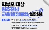 교육 전향윤 기자2026. 03.11[뉴스맘]광주시교육청이 학부모의 교육행정통합 궁금증을 해소하기 위해 두 차례에 걸쳐 ‘광주·전남 교육행정통합 설명회’를 개최한다. 첫 번째 설명회는 17일 오후 1시30분 광주시민협치진흥원에서 열리며, 이어 24일 오전 9시30분 AI교육원에서도 진행된다. 설명회는 ▲교육행정통합 추진 배경 및 경과 안내 ▲통합 이후 교육정책 변화와 전망 설명 ▲학부모 질의에 대한 답변 등 순으로 운영된다. 특히 이정선 교육감이 교육행정통합 추진 경과, 전망 등을 설명하고 학부모들의 질의에 응답하며 궁금증을 해소할 예정이다. 참여를 희망하는 …
