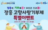경제 전향윤 기자2025. 03.23[뉴스맘]장흥군이 고향사랑기부제에 대한 참여를 유도하고 지역경제 활성화를 위해 ‘장흥에 기부해봄? 무조건 드려봄!’ 이벤트를 실시한다. 이번 행사는 3월 24일(월)부터 3월 30일(일)까지 7일간 진행되며 기간 중 장흥군에 고향사랑기부 후 답례품을 주문한 사람을 대상으로 구매금액의 10%에 상당하는 특산품을 추가로 증정한다. 행사에 참여하는 방법은 고향사랑 e음(온라인)에 접속하거나 농협은행을 방문해 장흥군에 10만원 이상 기부하면 된다. 지난해 전국 각지에서 장흥군에 4,530명이 6억4천1백여만원을 기부했다. 김성 군수…