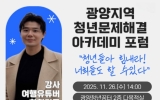 광양 전향윤 기자2025. 11.21[뉴스맘]광양시는 순천대학교 ‘글로컬대학30 사업’과 연계해 오는 11월 26일 오후 2시, 광양청년꿈터에서 ‘2025 광양지역 청년 문제 해결 아카데미 포럼’을 개최한다고 밝혔다. 순천대학교는 지역 청년이 직면한 문제를 진단하고 협력적 해법을 찾기 위해 지난 10월 순천을 시작으로 11월 광양, 12월 고흥에서 연속 포럼을 진행 중이다. 이번 포럼은 복지·문화 분야 논의를 중심으로 구성됐다. 이는 지난 9월 순천대학교가 광양·순천·고흥 청년을 대상으로 실시한 설문조사에서 광양 청년의 45%가 ‘복지·문화 분야’를 가장 시급…