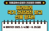 광양 전향윤 기자2025. 02.28[뉴스맘]광양시는 의료 취약계층인 의료급여수급권자의 건강검진 수검률 향상을 위해 1:1 검진 안내, 의료급여수급권자 건강검진 이벤트 등 적극적인 홍보 활동을 진행하고 있다고 28일 밝혔다. 올해 의료급여수급권자 일반건강검진 대상자는 20 부터 64세(1961~2005년생) 중 홀수년도 출생자로, 일반건강검진기관으로 지정받은 의료기관이라면 전국 어디에서나 검진받을 수 있다. 검진이 가능한 의료기관은 국민건강보험공단 홈페이지에서 확인할 수 있다. 건강검진 항목은 △신체 계측(키·몸무게·허리둘레) △시력·청력 측정 △혈압 측정 △…