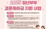 강진 전향윤 기자2025. 01.15[뉴스맘]완도군은 청년층의 결혼 초기 경제적 부담을 덜어주고자 ‘2025 청년 부부 결혼 축하금 지원 사업’을 추진한다. 결혼 축하금은 200만 원이며, 신청 자격은 혼인신고일 기준 만 49세 이하 청년 부부로 재혼의 경우에도 가능하다. 특히 다음의 요건을 모두 충족해야 한다. ▲혼인신고 이후 현재까지 부부 모두 전라남도에 6개월 이상 주소를 두고 거주 ▲부부 중 1명(신청자)은 신청일로부터 축하금 지급일까지 완도군에 주소를 두고 거주해야 한다. 신청자의 배우자는 도내 주소 이전이 가능하지만 타 시도 전출 시 지…
