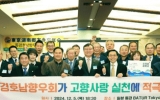 해남 전향윤 기자2024. 12.06[뉴스맘]전라남도는 5일 저녁 일본 동경에서 ‘동경호남향우회 고향사랑 실천 간담회’를 열어 재일향우와 함께 고향 발전과 상호 교류 방안을 논의했다. 지난 7월 열린 중국 고향사랑실천간담회에 이어 열린 이번 간담회는 고향사랑 실천 캠페인을 세계로 확산하고, 전남도와 재일동포 사회와의 연대를 강화하기 위해 진행됐다. 간담회에는 명창환 전남도 행정부지사, 김용덕 동경호남향우회장과 향우회 회원, 김달범 세계호남향우회 전임 회장 등 100여 명이 참석했다. 동경호남향우회는 전남 사랑애(愛) 서포터즈 5천 명 가입을 약정하고, 고향사랑기…
