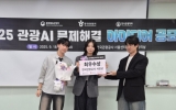 전남 전향윤 기자2025. 09.26[뉴스맘]전남대학교 문화관광경영학과 학생들이 한국관광공사가 주최한 ‘2025 관광AI 문제해결 아이디어 공모전’ 에서 최우수상(한국관광공사 사장상)을 수상하는 성과를 거뒀다. 전남대학교 문화관광경영학과 학생팀 ‘NOVATOURS(노바투어스)’가 출품한 아이디어 ‘Zero Waste Festival Together(제페투)’가 혁신성과 실현 가능성을 높이 평가받으며 최종 수상작으로 선정됐다. 수상팀은 문화관광경영학과 송민우, 노시형, 박지현 학생으로 구성됐으며, 이들은 축제와 대규모 이벤트 현장에서 반복적으로 문제시되는 폐기물 처…