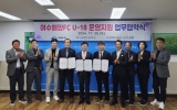 여수 전향윤 기자2024. 11.21[뉴스맘]여수시가 여수공업고등학교, (사)여수공공스포츠클럽과 유소년축구단 ‘여수해양FC U-18팀’ 선수육성 지원을 위해 손을 맞잡았다. 시에 따르면 지난 20일 정기명 시장과 김대원 여수공고 교장, 이용건 여수공공스포츠클럽 회장, 명경식 여수시체육회장, 김평호 여수축구협회장 등 10여 명이 참석한 가운데 업무협약식을 가졌다. 협약에 따라 여수공고는 여수해양FC U-18팀 선수들을 적극 수용해 학업과 훈련을 병행할 수 있는 환경을 조성하며, 여수공공스포츠클럽은 학교 밖 선수단 생활지도와 운영관리 등을 맡게 된다. 정기명 시장은…