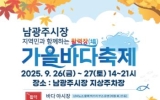동구 전향윤 기자2025. 09.24[뉴스맘]광주 동구는 오는 26~27일 이틀간 남광주시장 공영주차장 일원에서 ‘활력장! 가을 바다 축제’를 개최한다고 밝혔다. 남광주시장 문화관광형시장 육성사업 일환으로 열리게 된 이번 행사는 광주 대표 수산물시장인 남광주시장을 전국에 알림과 동시에 지역 대표 축제로 육성하기 위해 마련됐다. 26일 오후 2시부터 농악놀이, ‘수산물 가요제’ 예선전, 전어잡이 체험 등 식전 행사가 펼쳐지며, 오후 5시 개막식을 시작으로 본격적인 행사가 열린다. 오후 6시부터는 가을 별미가 가득한 ‘바다 야시장’을 운영, 시민들의 발길을 이…