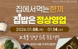 고흥 전향윤 기자2026. 01.08[뉴스맘]고흥군이 운영하는 온라인 농수축특산물 쇼핑몰 ‘고흥몰’이 가정 내 식사를 보다 간편하고 실속 있게 즐길 수 있도록 돕기 위해 집밥 중심 기획전을 운영한다. 이번 행사는 ‘집에서 먹는 한 끼, 집밥은 정상영업’을 주제로, 밀키트·반조리 식품·국·찌개류·밑반찬 등 집에서 손쉽게 준비할 수 있는 상품을 중심으로 최대 30% 할인 혜택을 제공한다. 행사 기간은 1월 8일부터 14일까지다. 특히 조리 부담을 줄이면서도 일상적인 식사를 꾸준히 이어갈 수 있도록 실용성과 활용도가 높은 상품 구성을 강화했으며, 맞벌이 가구와 1~…